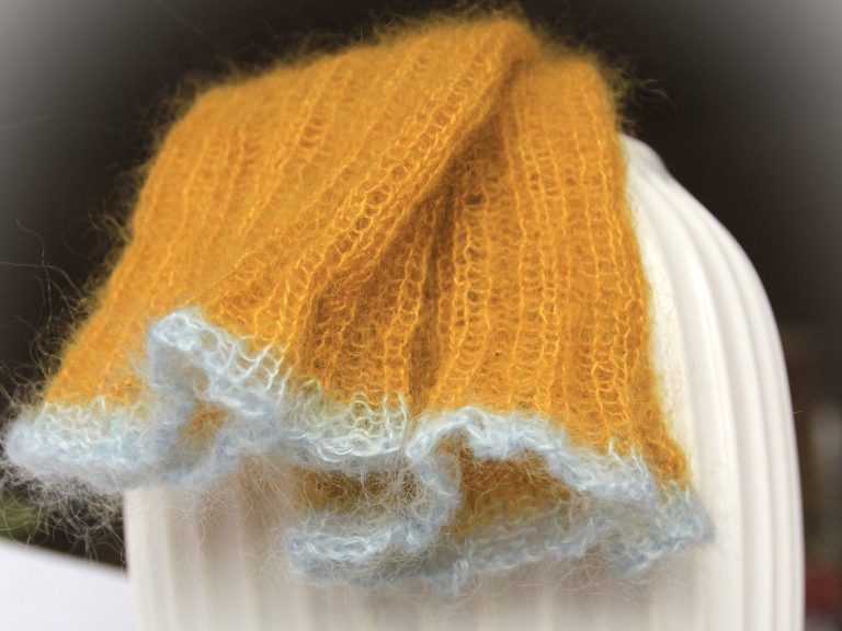 Ein Hauch von nichts - gerade mal 7 g wiegt dieses kraus rechts mit Zu- und Abnahmen am I-Cord-Rand gestrickte Halstüchlein. Mit Cashmir-Garn wird es am weichsten, aber auch brushed Alpaka-Garne tun hier ihren Zweck. Es ist ein Hingucker, weil es den Hals betont, wie es schon die Frauen in den 60iger Jahren gerne trugen. Je nach Bedarf, kann es länger, breiter oder sonstwie verändert werden. Vor allen Dingen kann man damit hervorragend Reststücke verstricken. Man muss nur bis zur Hälfte der Menge Zunahmen stricken und danach die gleiche Maschenzahl mit der gleichen Reihenzahl abnehmen. Wirklich ein Gewinn für alles - Garnmenge, Größe, Farbe, Garnart.